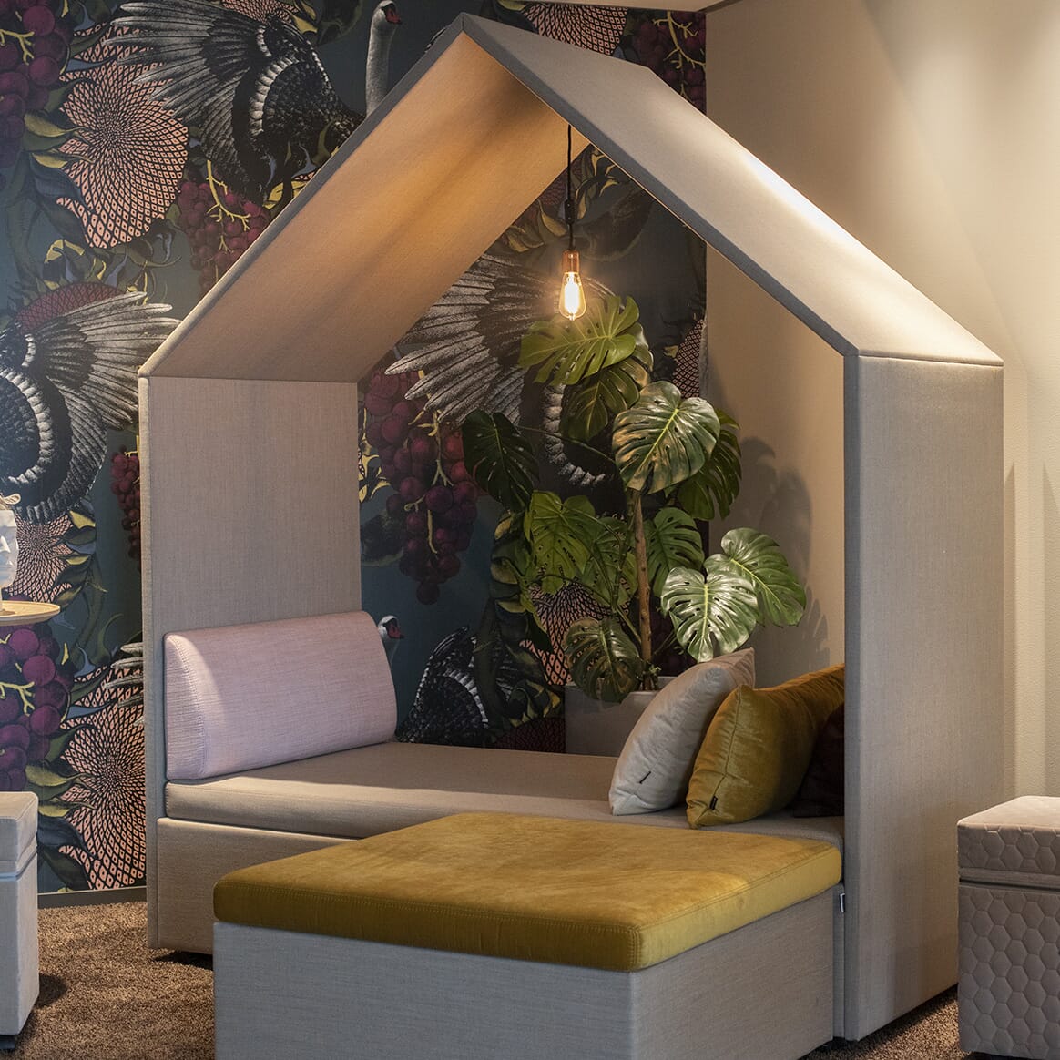 • Stabil konstruksjon, kledd med 3 mm skumlaminert myk sittetekstil