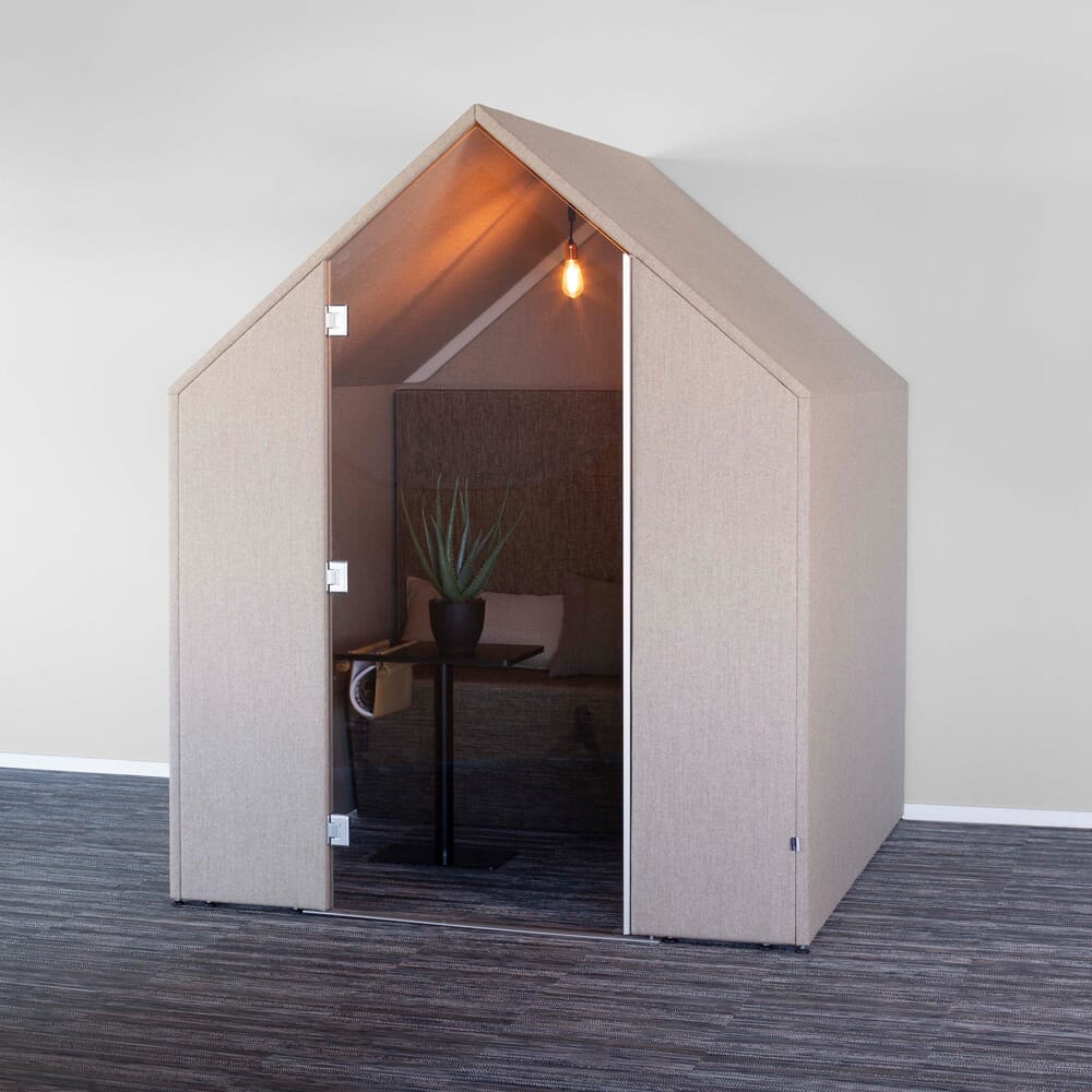 The Hut er lydabsorberende både innvendig og utvendig. Huset kobles enkelt sammen med et klikksystem.