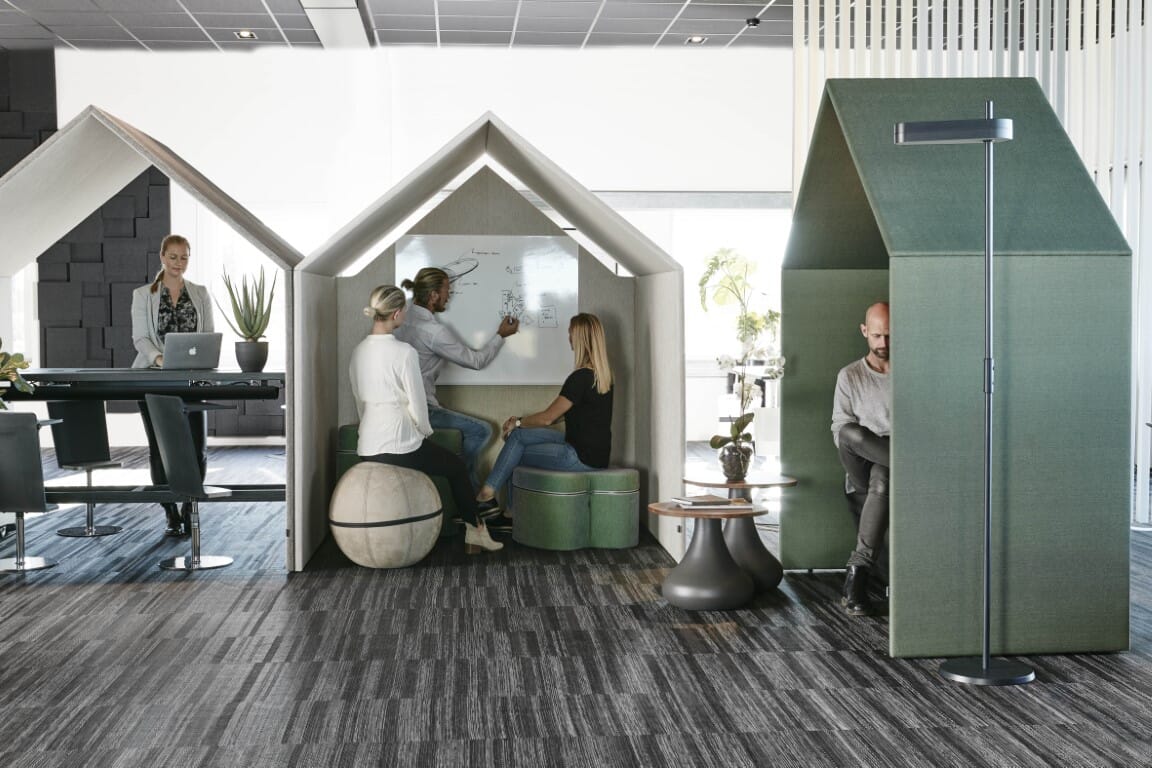 Vi tilbyr en rekke støydempende materialer og løsninger som kan bidra til å skape et mer behagelig og produktivt arbeidsmiljø. Vi kan også hjelpe deg med å planlegge og innrede stillesoner med støydempende absorbenter i tak og på vegg eller The Hut Collection.